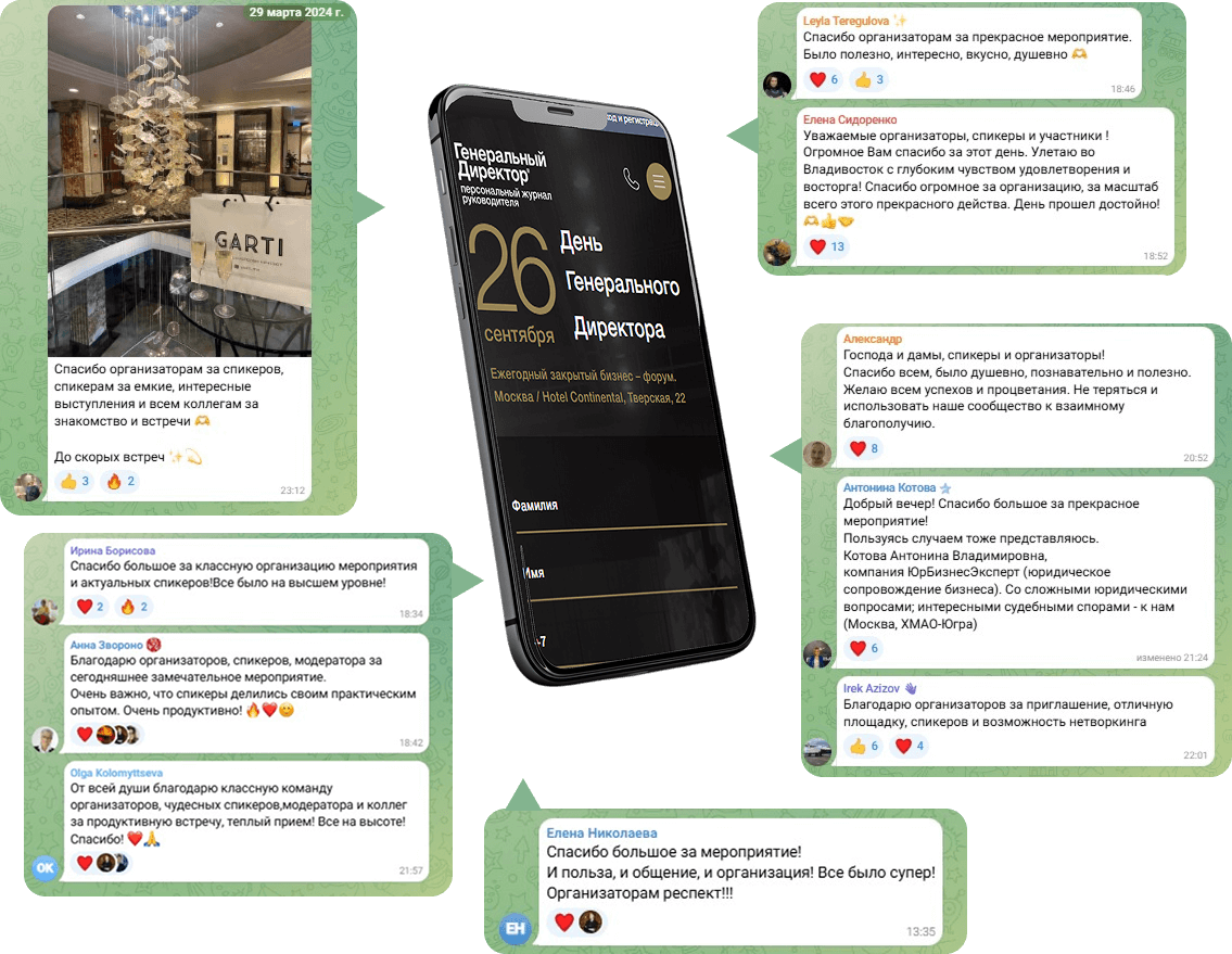 В премиальном отеле Москвы собираются только собственники бизнеса и управленцы со всей страны, чтобы обсудить новые идеи, тренды, эффективные решения для роста бизнеса. Каждый спикер деловой программы не случаен — его опыт важен именно сейчас, в текущих реалиях.